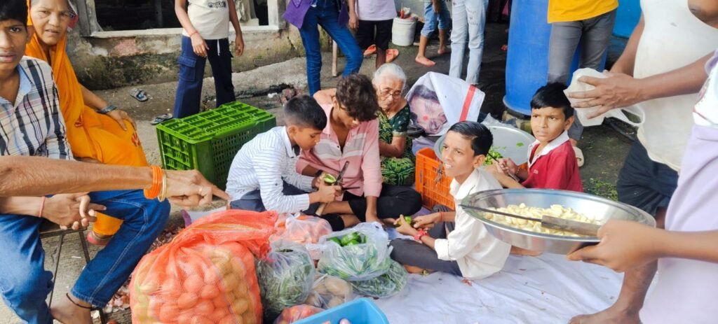 ठाणे के वागले स्टेट में बच्चों का अनोखा भंडारा,2000 भक्तों ने प्रसाद ग्रहण किया।