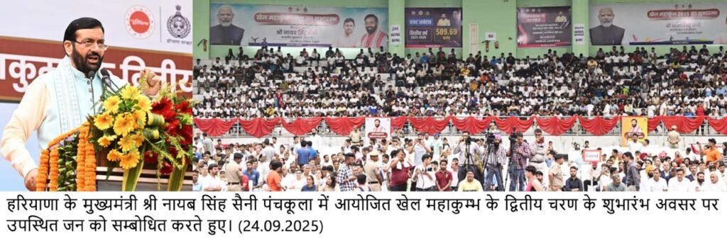पंचकूला , 24 सिंतबर(ईशान टाइम्स)– हरियाणा के मुख्यमंत्री श्री नायब सिंह सैनी ने कहा कि राज्य सरकार का लक्ष्य हरियाणा को न केवल भारत की बल्कि विश्व की खेल राजधानी बनाना है। उन्होंने कहा कि सरकार ने पिछले सालों में हरियाणा में खेलों के लिए एक विजन विकसित किया , जिसका उद्देश्य हर बच्चे को खेल से जोड़ने, हर गांव में खेल का मैदान बनाने और हर उस युवा को अवसर देना है जिसमें खेल के प्रति ललक है।