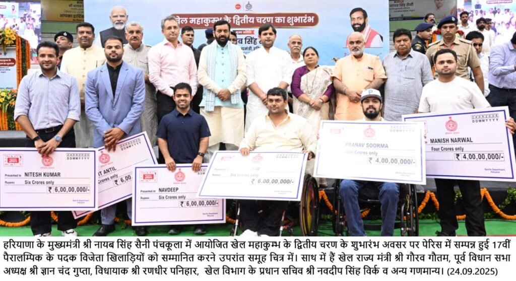 मुख्यमंत्री ने पेरिस में हुए पैरा-ओलम्पिक खेलों में पदक जीतने वाले हरियाणा के 8 खिलाड़ियों को 42 करोड़ रुपये की प्रोत्साहन राशि देकर किया सम्मानित